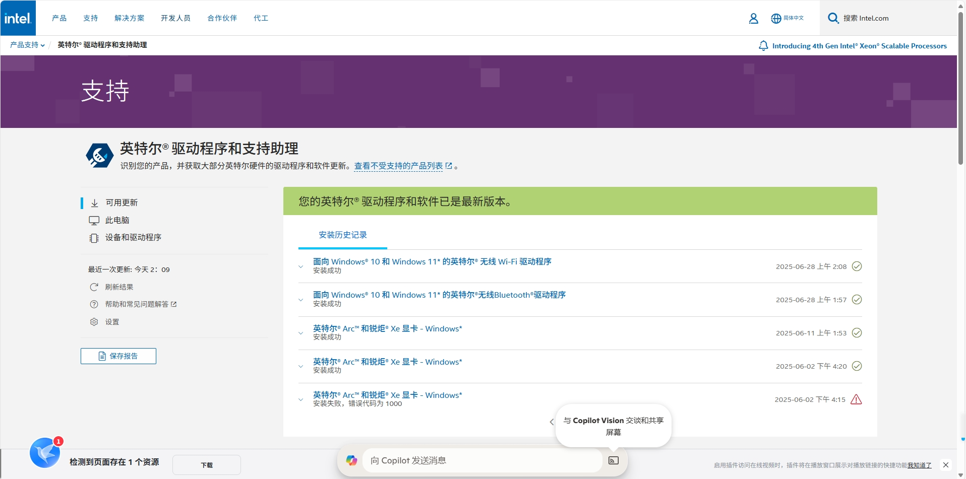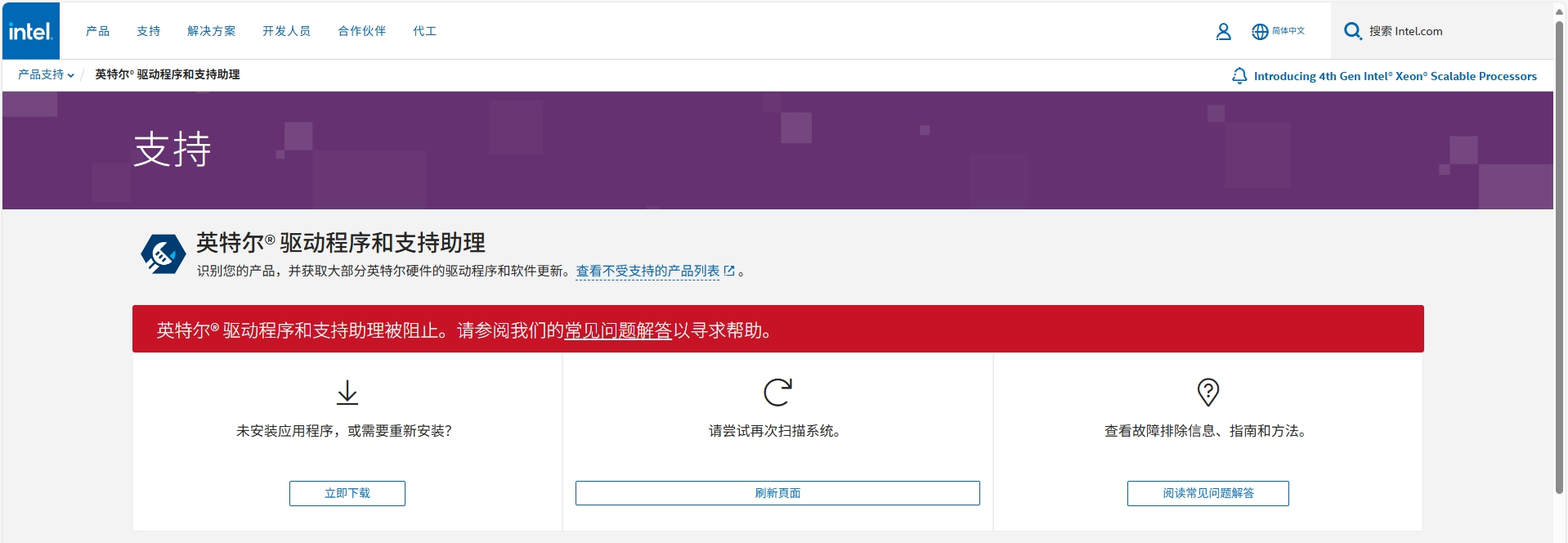 电脑运行的Intel Driver & Support Assistant(英特尔® 驱动程序和支持助理)提示有驱动可以更新,但打开Edge后,提示:英特尔® 驱动程序和支持助理被阻止。