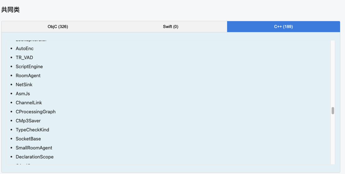 我们看到除了一些oc文件, 还有很多c++文件, 没错, 这就是cocos引擎代码, 因为他是静态库的存在, 最终被编译到可执行文件中, 造成了可执行文件相似度极高