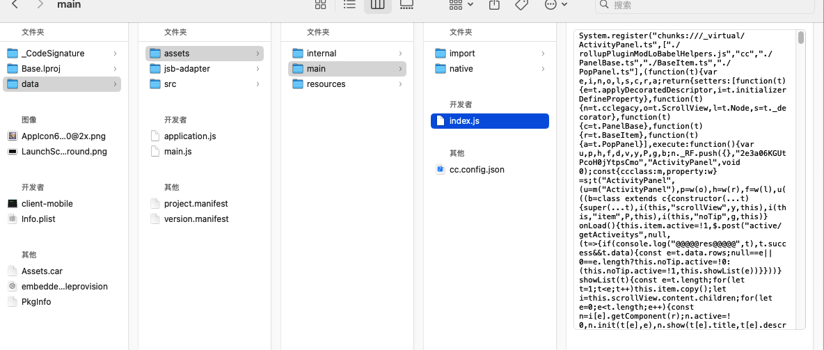 我们看到cocos的编译产物非常简洁, 似乎只有一个可执行文件和类似uniapp一样的js文件组成,没有基础的动态库