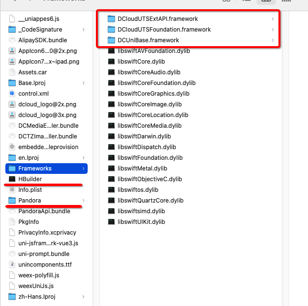 2: 两个动态库 DCloudUTSFoundation.framework,DCUniBase.framework
