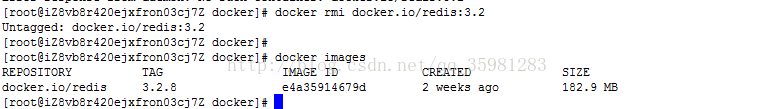 后来在Stack Overflow删看到使用repository和tag进行操作的,所以执行docker rmi docker.io/redis:3.2
