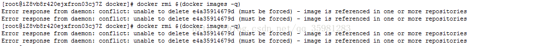 所以我想删除所有镜像docker rmi $(docker images -q),出现下面错误