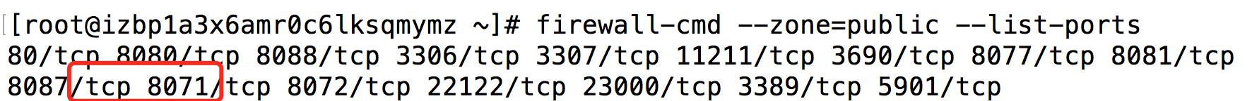 firewall-cmd --zone=public --remove-port=8071/tcp --permanent #关闭8071端口