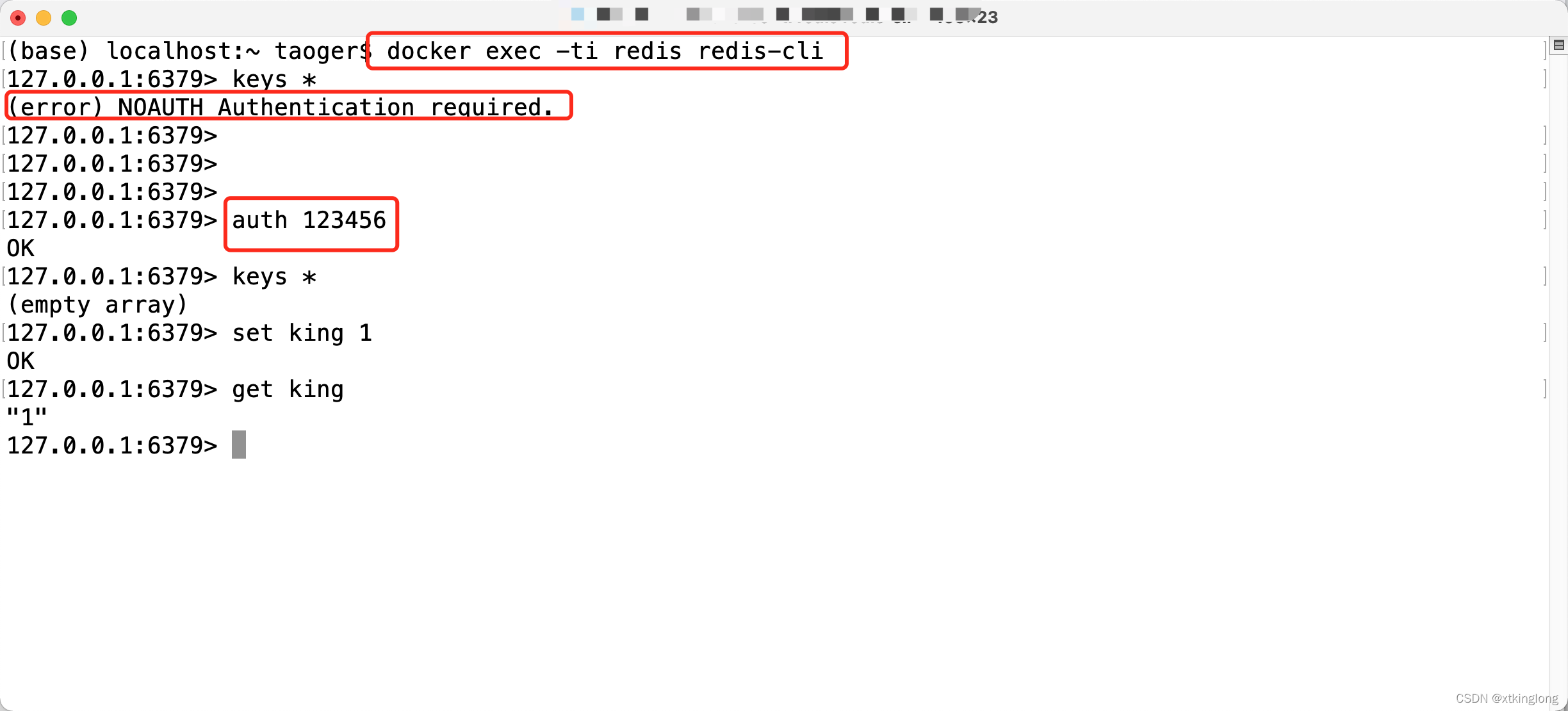 但是显示NOAUTH Authentication required,因为刚你设置了密码,如下图