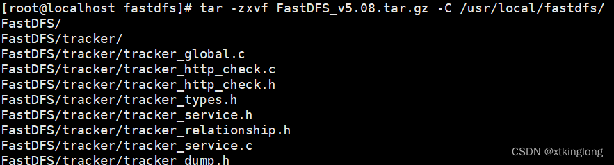 tar -zxvf FastDFS_v5.08.tar.gz -C /usr/local/fastdfs/