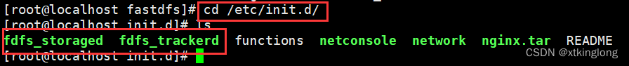 /etc/init.d/目录中,脚本文件分别为fdfs- storaged和fdfs-trackerd