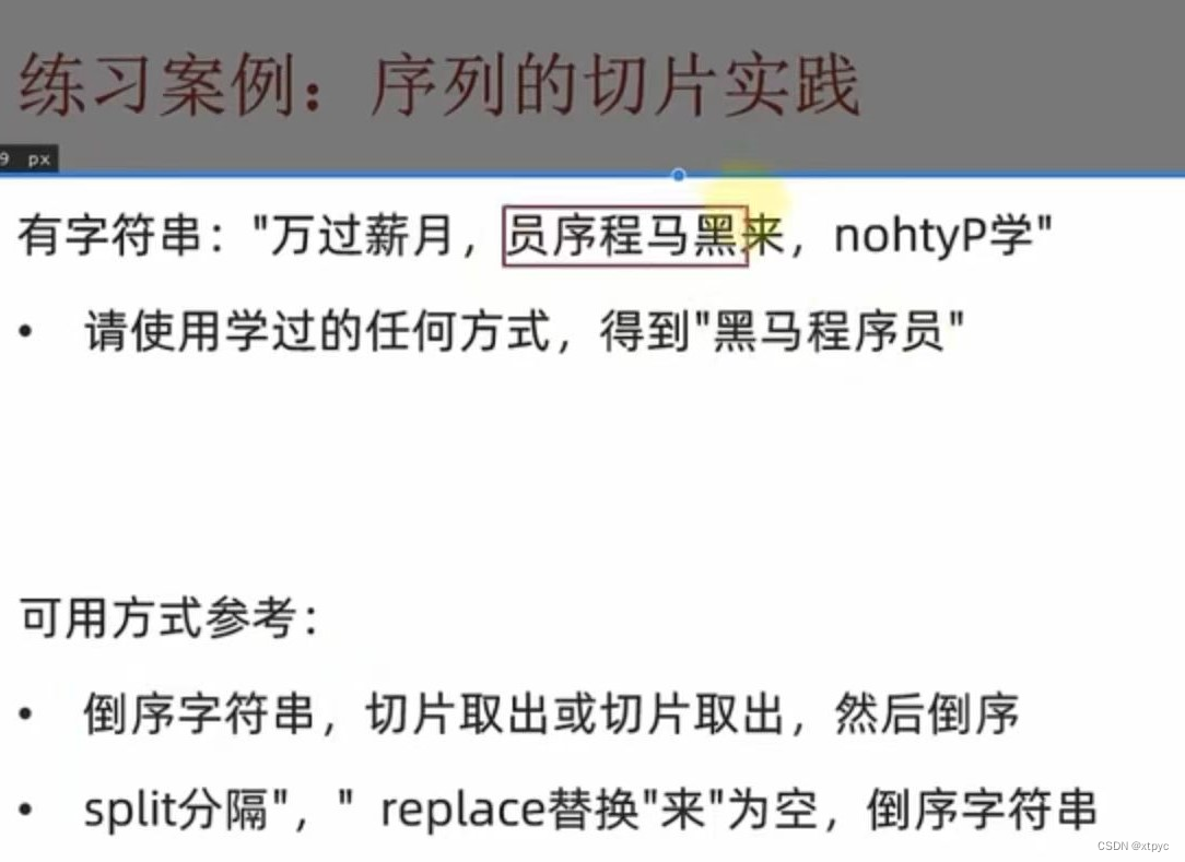 ''' 通过下标索引取出对应位置的数据 ''' #定义列表 List = ['tom','python','lalal'] #列表[下标索引],从前向后从0开始,每次+1, 从后往前从-1开始,每次-1 print(List[0]) print(List[1]) print(List[-1]) #定义嵌套列表 List1 = [[1,2,3],[123,333,444]] #取出嵌套索引的元素 print(List1[0][1]) print(List1[1][-2])
