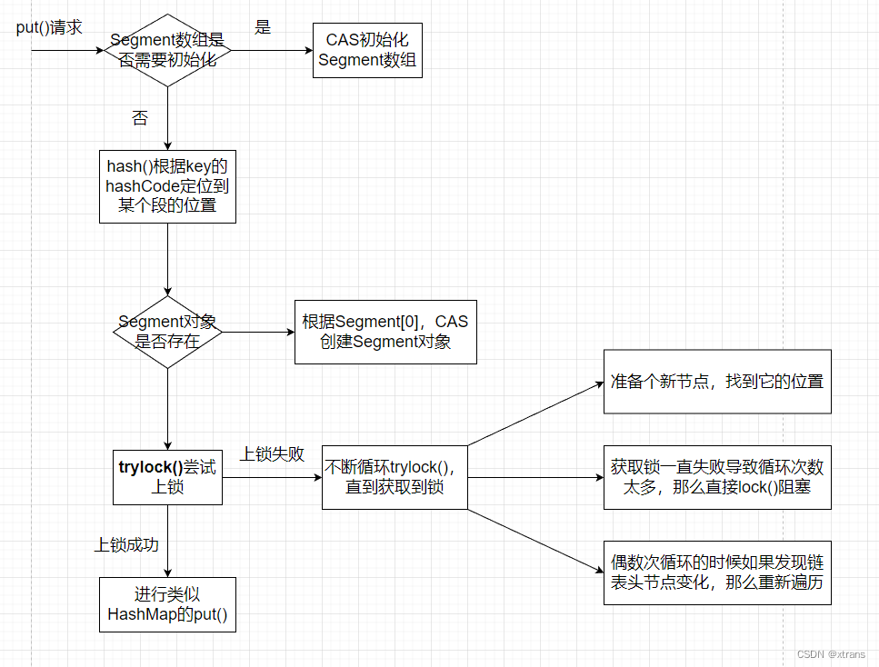 jdk1.8要比jdk1.7多一步考虑红黑树的操作,为什么需要多加一个红黑树呢?主要是为了避免数组的长度过长,链表的的效率是O(n),随着链表的长度增加效率会下降,红黑树的效率是O(logn),在存储大量元素的时候会更占优势
