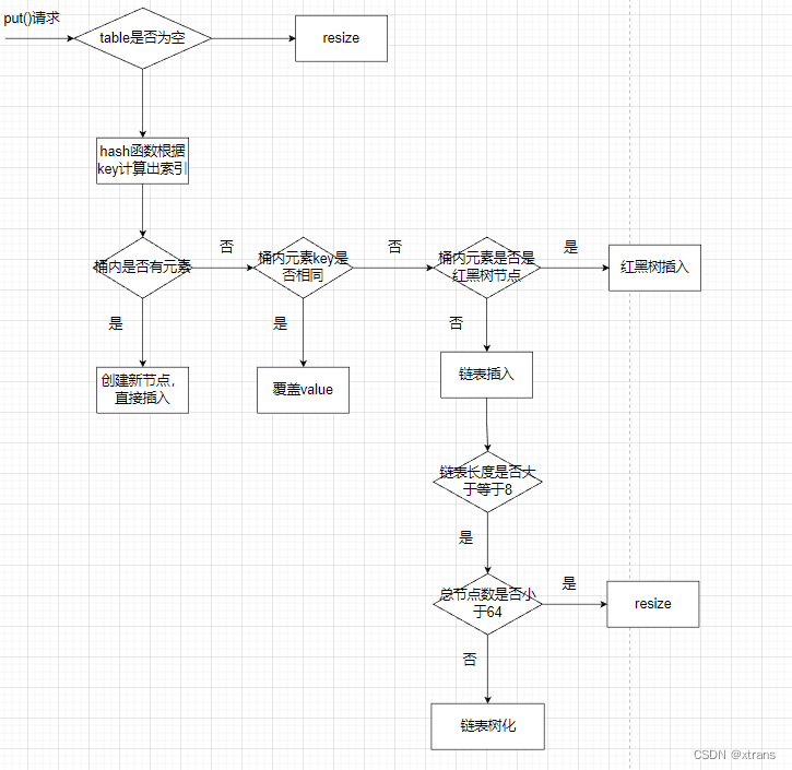 否则,进行链表查找插入,如果找到了key相同的元素,进行value替换