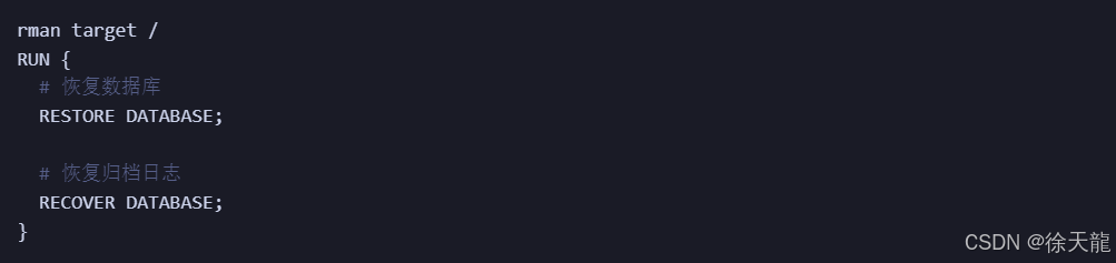 如果需要恢复数据库,可以使用 RMAN 来恢复: