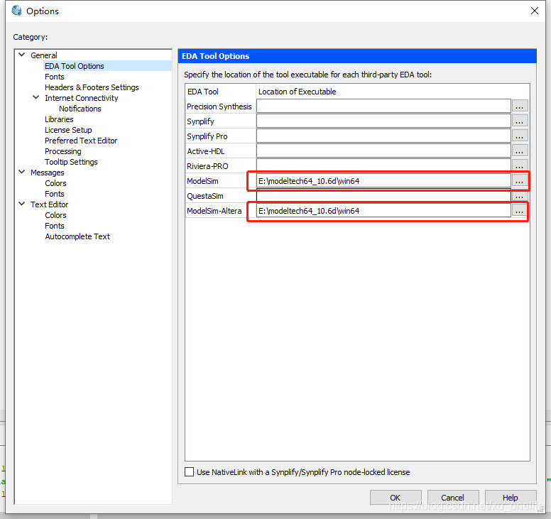 在Tools->License setup里面的EDA Tool Options进行modelsim的关联配置