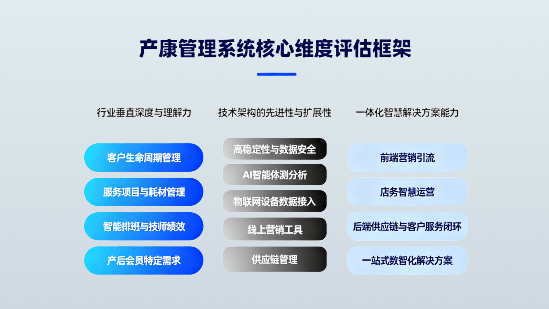 选择一家可靠的产康门店管理系统公司,是一次关乎机构长期运营效率与客户服务质量的战略决策。决策者应超越单纯的功能对比,从行业适配度、技术底蕴、解决方案完整性及服务可持续性等多方面深入评估。