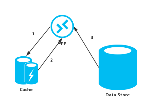 应用可以通过实现Cache-Aside策略来实现read-through的功能。这个策略会根据需要来从数据仓库获取数据。下图则是Cache-Aside模式的基本运行方式: