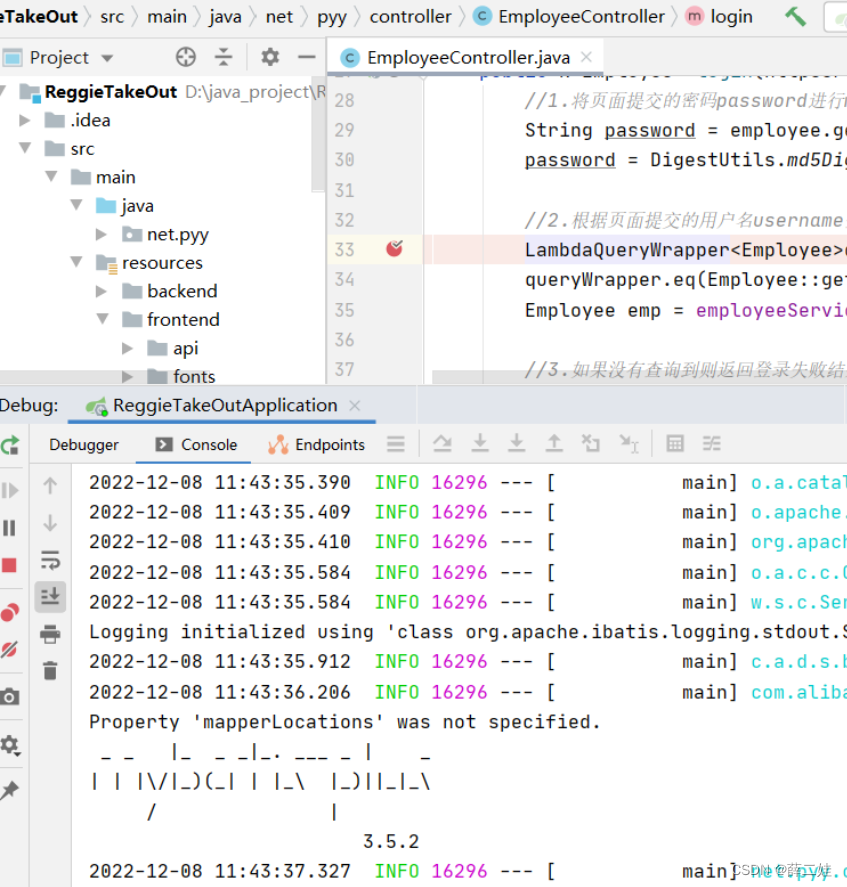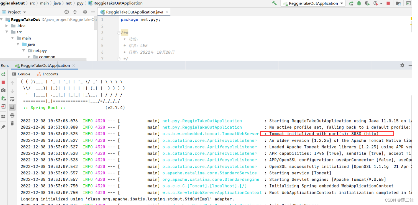 创建net.pyy包,然后在包里创建ReggieTakeOutApplication类,运行程序,查看效果.
