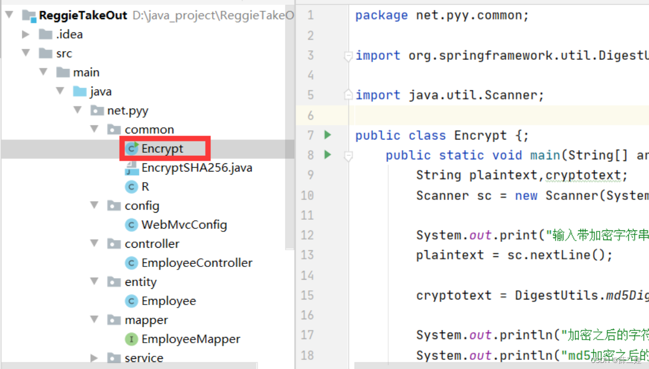 在net.pyy.common包里创建EncryptMD5类,运行程序,查看结果