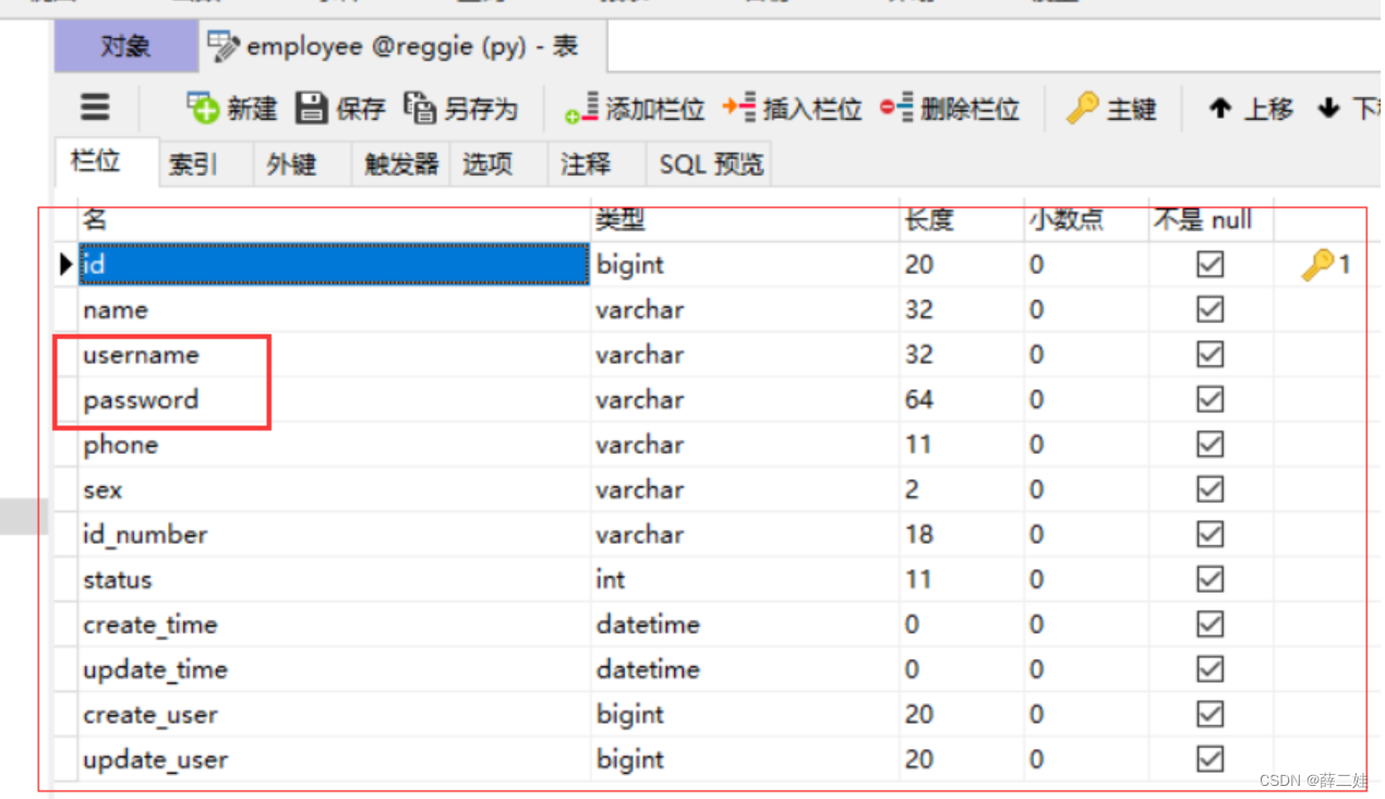 (三)数据模型 - 雇员表