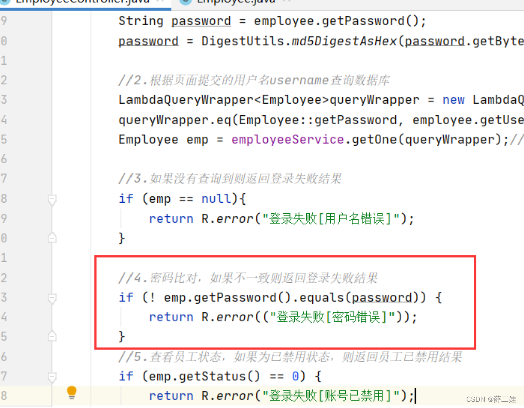 密码比对,如果不一致则返回登录失败结果