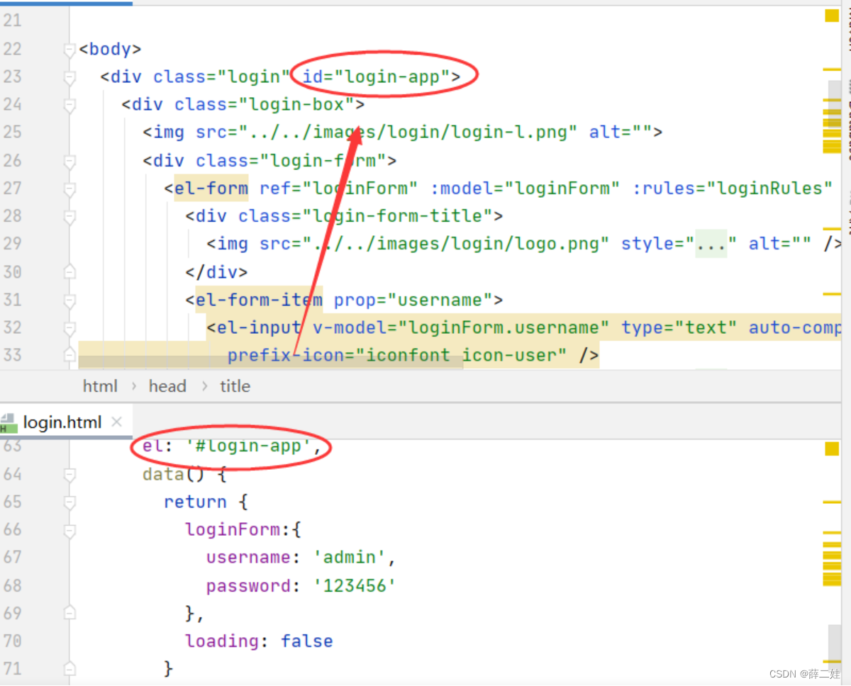 Vue对象通过el属性绑定了id属性为login-app的div元素