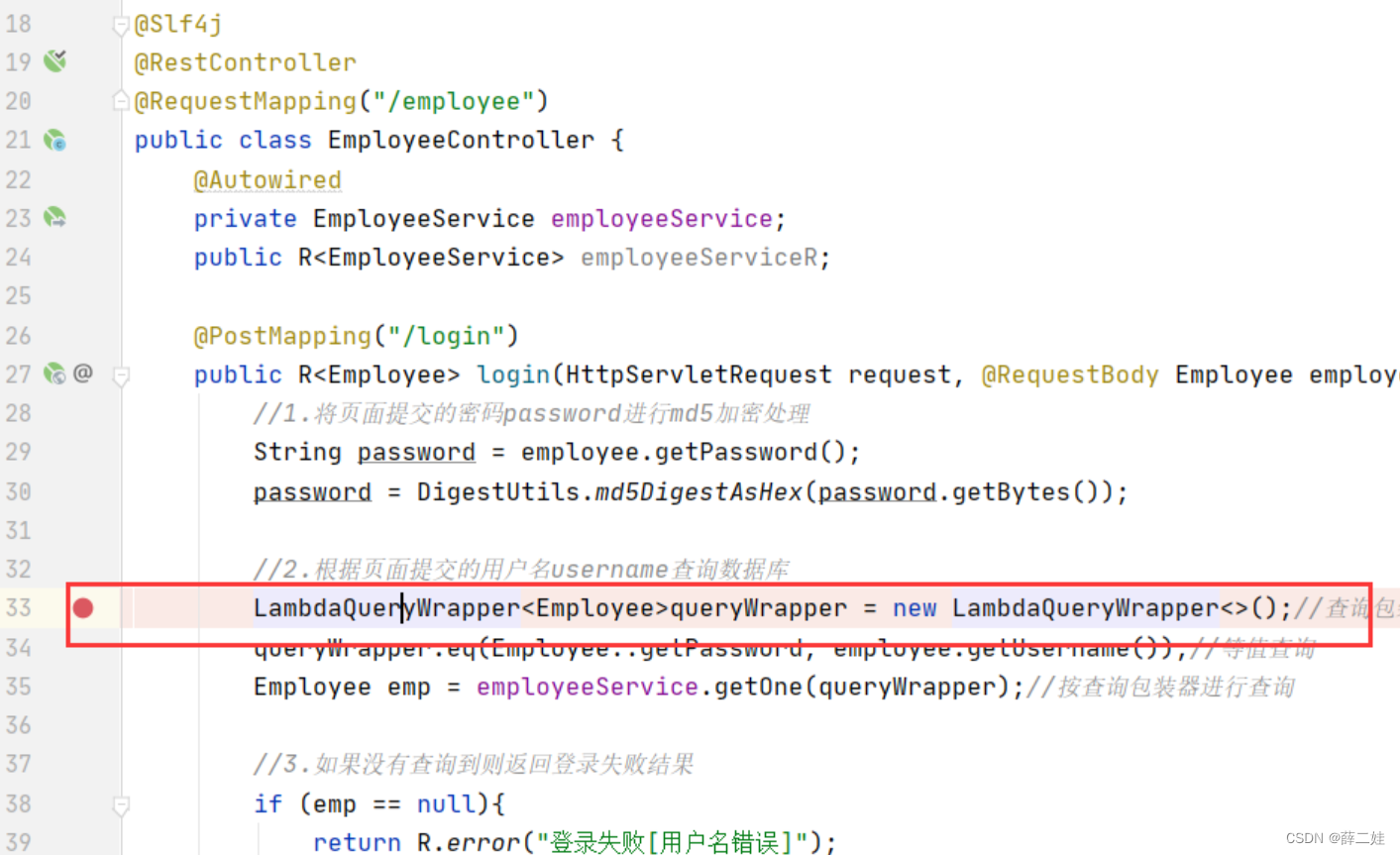 在EmployeeController里设置断点