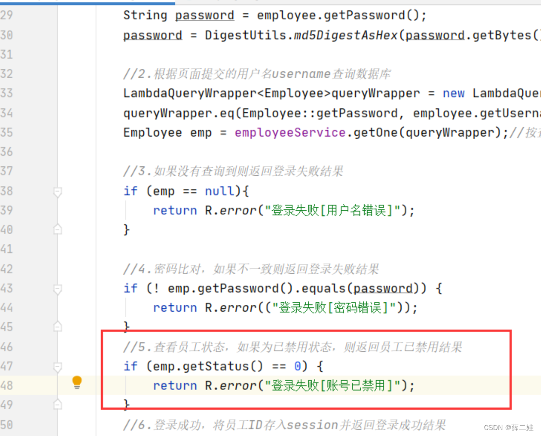 查看员工状态,如果为已禁用状态,则返回员工已禁用结果