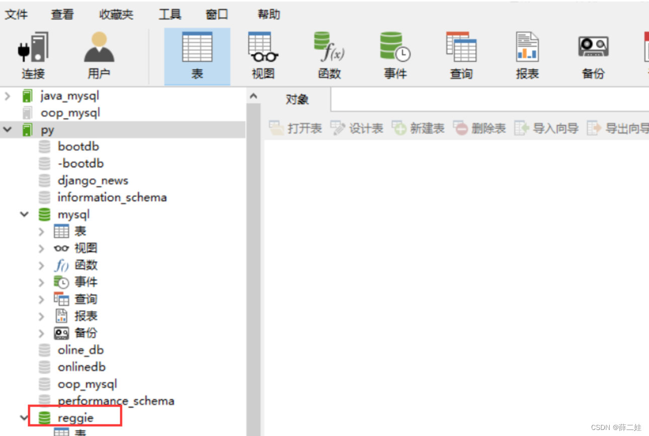 创建项目需要的数据库 - reggie,字符集采用utf8mb4