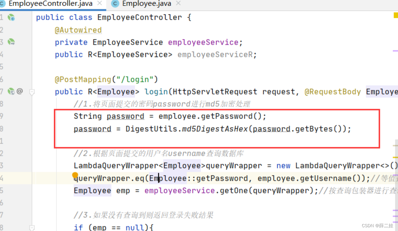 打开雇员控制器EmployeeController