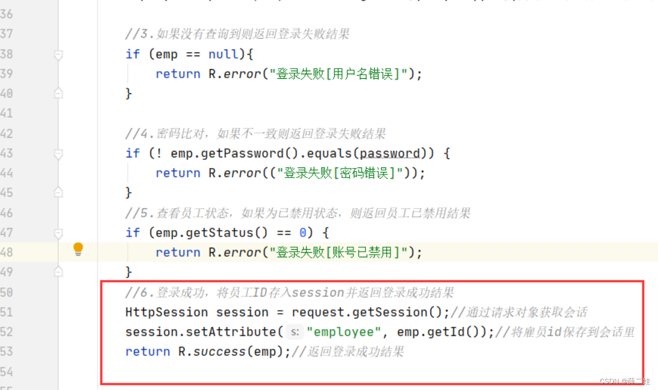 登录成功,将员工id存入Session并返回登录成功结果