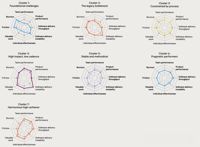 在今年的DORA报告里,研究者把近五千个团队的画像汇总成了七种「典型人设」。