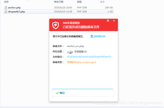 最后把$str的源码写入脚本anchor_src.php,使用360杀毒扫描如下: