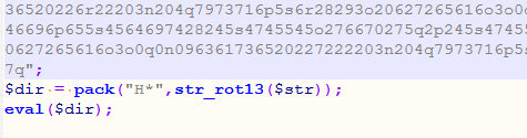 0x01:先用str_rot13()对后门脚本进行编码,再用unpack进行HEX转码得到一长串字符串$str。