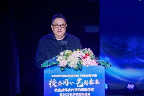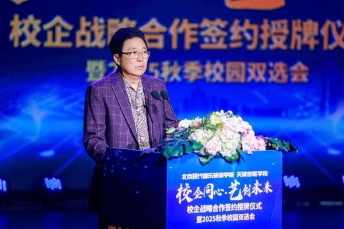 活动现场,北京现代艺术传媒教育集团董事长、北京现代音乐研修学院院长、天津传媒学院校长李罡在致辞中回顾了北音32年发展历程,强调校企“同生共死”的紧密关系,并指出此次合作是从“点状突破”迈向“系统融合”的关键升级。他表示:“我们签署的不仅是一纸协议,更是一份面向未来的‘创新契约’;授予的不仅是一块牌匾,更是一座连接校园与市场的‘人才之桥’。”