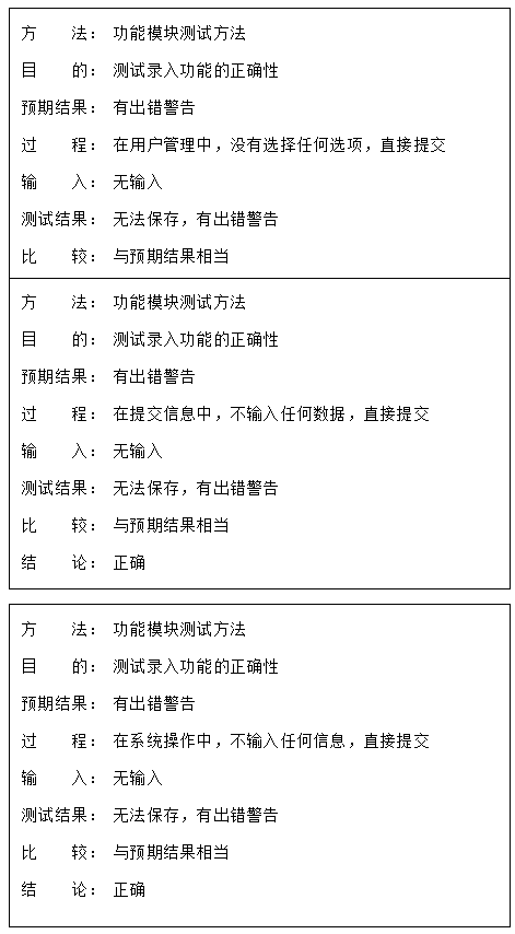 ③ 安全测试:验证安装在系统内的保护机构确实能够对系统进行保护,使之不受各种非常的干扰。针对本系统主要是对权限系统的测试和对无效数据、错数据、和非法数据干扰的能力的测试。