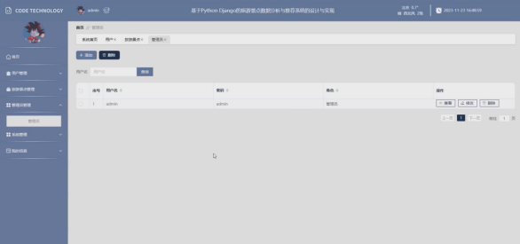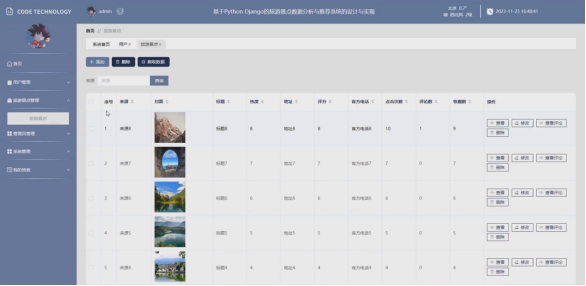 管理员功能在旅游景点数据分析与推荐系统中起着重要作用,主要用于管理系统的各项运营和维护工作。管理员拥有特殊的权限,可以对系统进行设置、监控和管理,保障系统的正常运行和安全性。