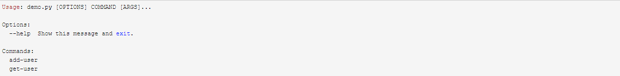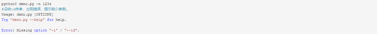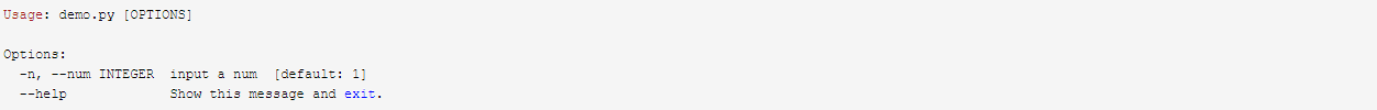 help:在命令行输入 "python3 demo.py --help" 的时候,它可以提示我们这个程序有哪些命令可以用。和我们使用命令行一个道理的。