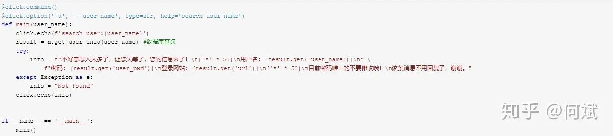 一开始我是通过在 python 脚本中加个配置文件,然后通过配置文件的形式进行用户名的修改,但是这种方式不灵活,每次都需要重新运行 Python 代码。或者我们还可以使用 fastapi搭建一个RESTful api的服务,但是我的懒得搭这个服务。最终我选择使用命令行的形式去运行。使用的模块就是今天说的这个 click 模块。