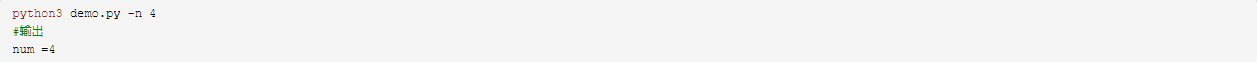 --num:是第一个参数的完整名称,我们在程序中接收值的时候使用它。注意是二个短'-'。