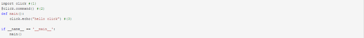 装饰器@click.command()会将我们的函数包装成 click 对象,然后我们可以在函数中调用 click 的一些方法,常用的是click.echo,它的作用类似我们的 print,输出用的。