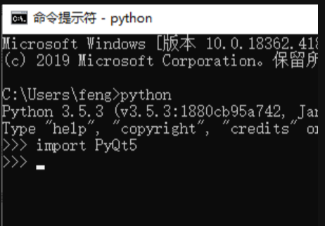 2、然后输入import PyQt5,如果运行成功,说明安装成功: