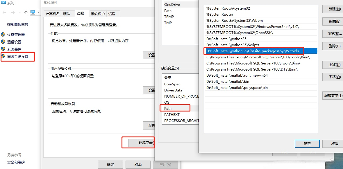 安装好PyQt5和PyQt5-tools成功后,还需要配置相关的环境变量。