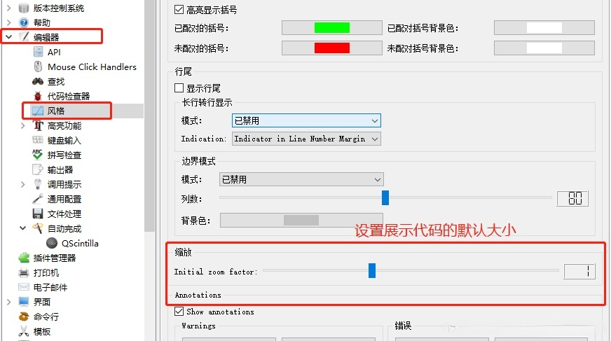 7、点击“编辑器”->“风格”->“缩放”,设置代码的默认大小,配置如下图所示: