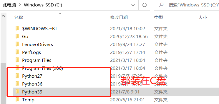 这里主要是对 python3.9 修改,进入刚才的安装路径C:\Python39, 将文件下的 python.exe 改为 pyhon39.exe ,pythonw.exe 改为 pythonw39.exe