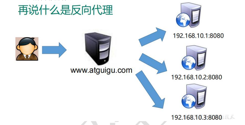 - 反向代理,其实客户端对代理是无感知的,因为客户端不需要任何配置就可以访问,我们只需要将请求发送到反向代理服务器,由反向代理服务器去选择目标服务器获取数据后,在返回给客户端,此时反向代理服务器和目标服务器对外就是一个服务器,暴露的是代理服务器地址,隐藏了真实服务器 IP 地址。
