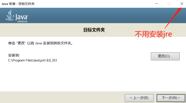 安装对应版本,安装地址选自己建好的文件夹,出现下面jre安装页面退出即可(jdk自带jre),免安装版本直接解压即可。