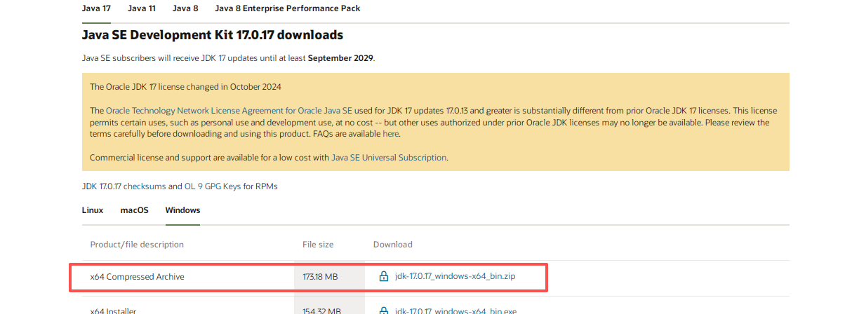 点击download注册登录后下载相应版本,本次共同演示下载JDK1.8和21的exe安装版和17的zip免安版
