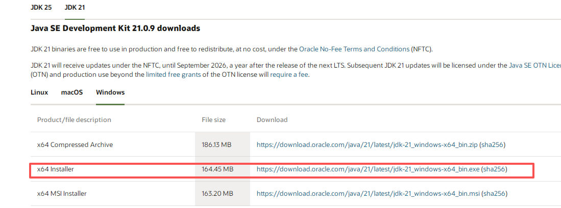 (jdk21与1.8相同,注意系统普遍选64位,32位系统选32位版本)