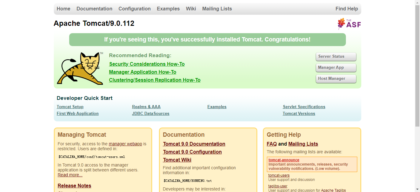 如果出现如下图,则代表tomcat安装配置都已成功。