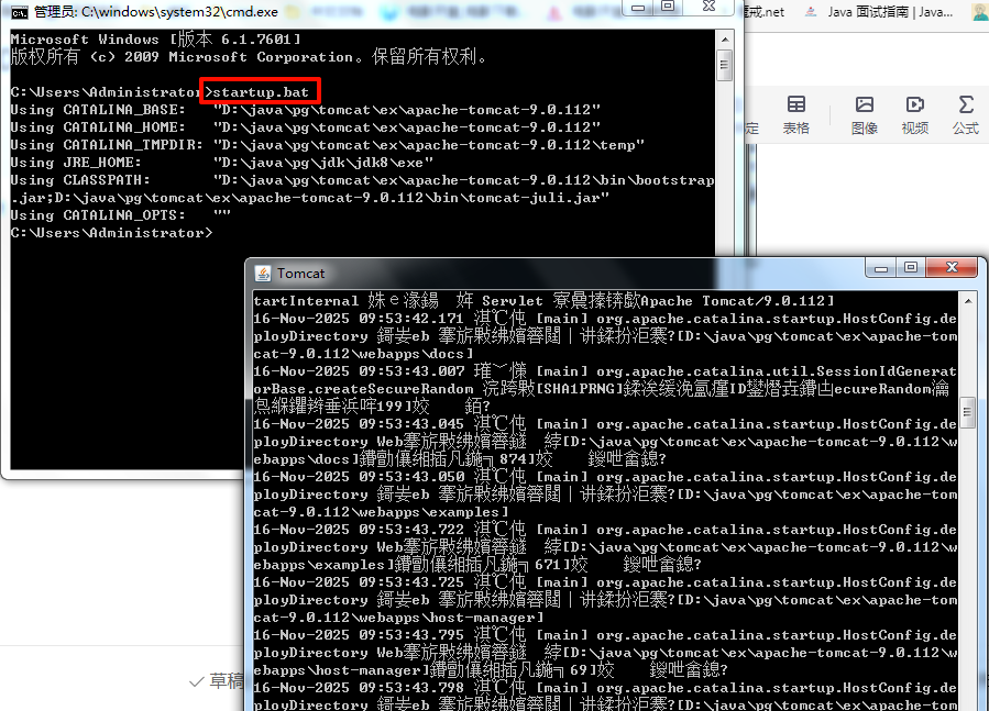 键盘输入win+R输入cmd回车,然后再输入startup.bat回车,看到以下画面说明启动成功,不要关闭页面继续验证(关闭,则打不开后续验证页面)