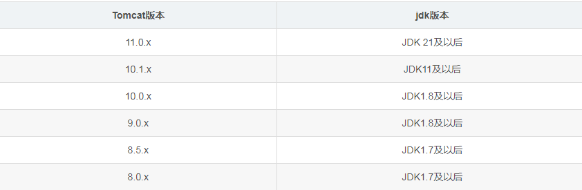 安装前首先确保JDK环境已安装和配置(Tomcat与jdk有版本对应关系)
