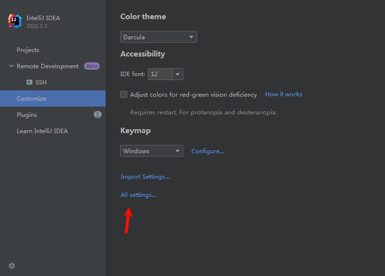 此时大体配置已完成,即可开始使用,idea功能及可配置项很多,以上给出常用基本配置,剩下的随后续使用,可自行调试配置。