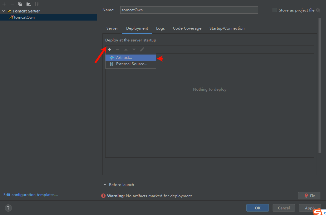 选择Deployment 点击 + 选第一个,应用保存